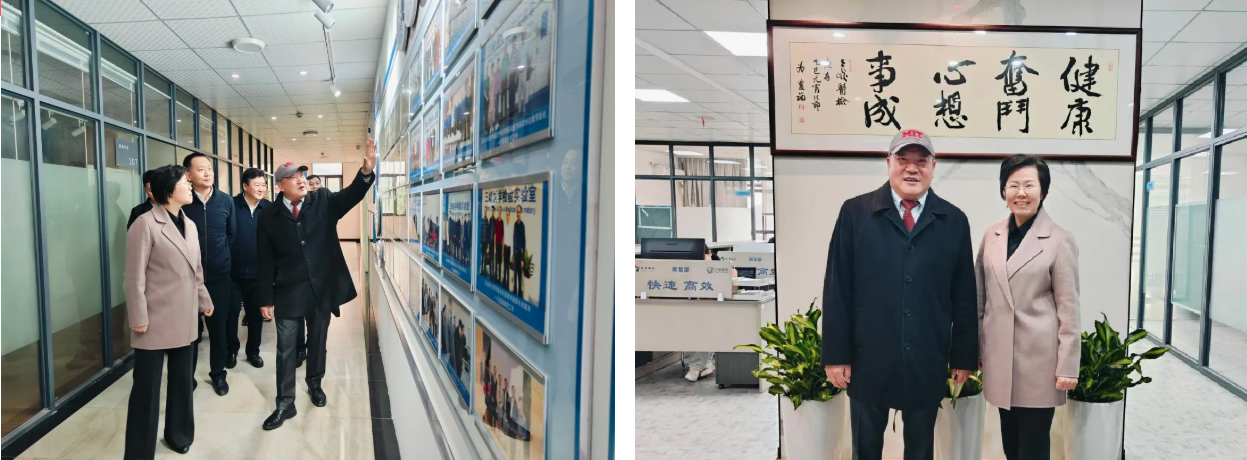 在三楼办公区域,看到墙上邓亚光教授团队在宜昌落户创新创业十年来的成长和收获,她说,这就是企业砥砺奋进最好的见证,勉励企业戒骄戒躁,保持荣誉,争取更大的进步和发展,特别是要认真学习习主席在民营企业家座谈会上的重要讲话,充分认清“民营经济发展前景广阔大有可为,民营企业和民营企业家大显身手正当其时”的深刻道理,撸起袖子,甩开膀子,奋勇争先,奋楫进位,以实干笃行标定无可替代的行业地位。